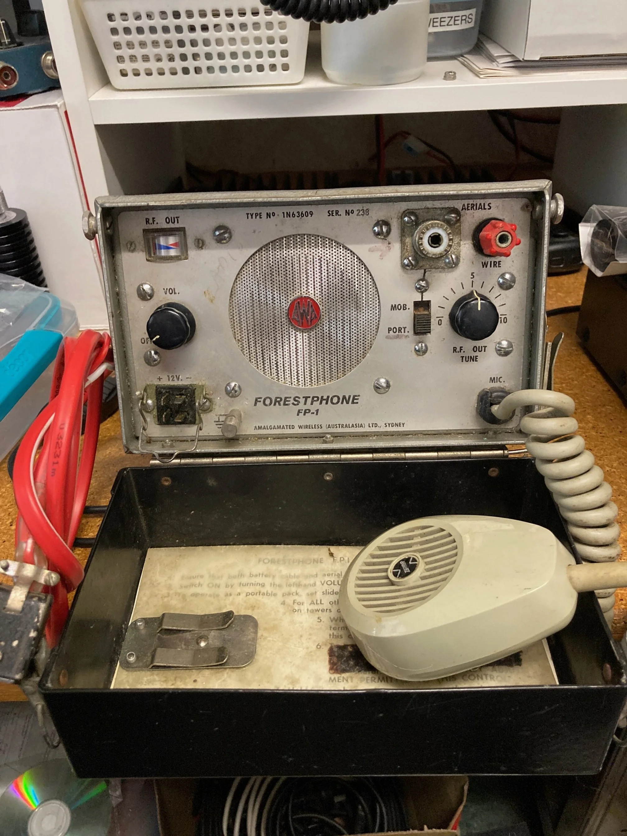 “I recently attended the NTARC auction and was able to acquire an AWA FP-1 Forest Phone, modified for amateur use. I already have an example of this radio in original condition, but was happy to have one for spares. Throughout most of the 20th century AWA was Australia's leading electronics company, providing a wide range of radio, television, and audio equipment as well and as broadcasting services. Over that time period the company partnered with other companies including RCA, Thorn and Rediffusion. But as an Australian company, the Forestphone FP-1 no doubt was its own creation, a small, easy-to-use, portable transceiver designed for use by forestry crews and similar commercial endeavours back when HF radio was the primary means of communication beyond line-of-sight. The FP-1 I recently acquired was originally built for the Forestry Commission in the state of Victoria. Later users of this radio were gliding clubs, before gliders and balloonists were compelled to move to the VHF air band in the 1980s. They were also used by mobile bee-keepers, inland waterways craft such as houseboats and dredgers, and local government operators in the inland.