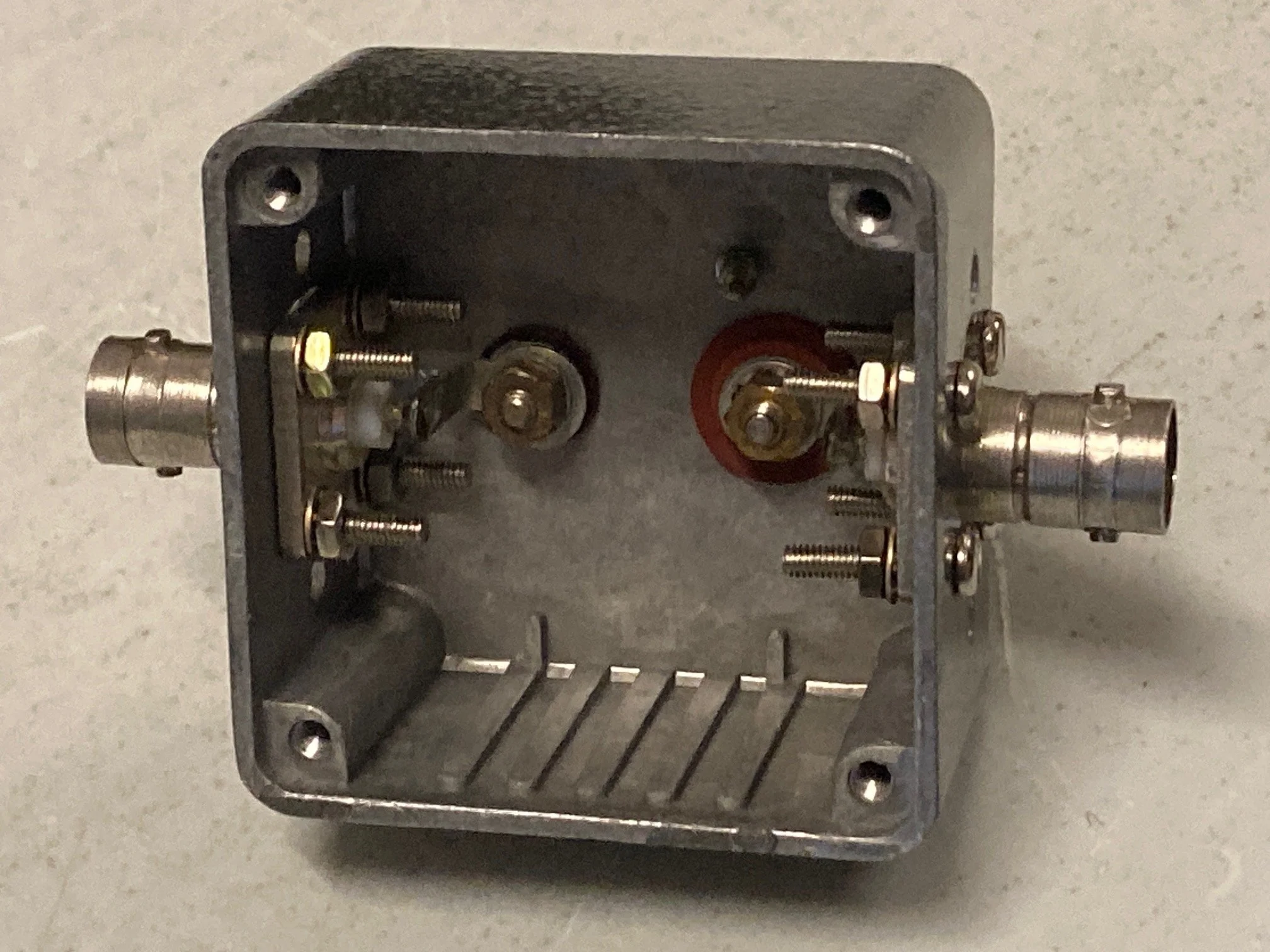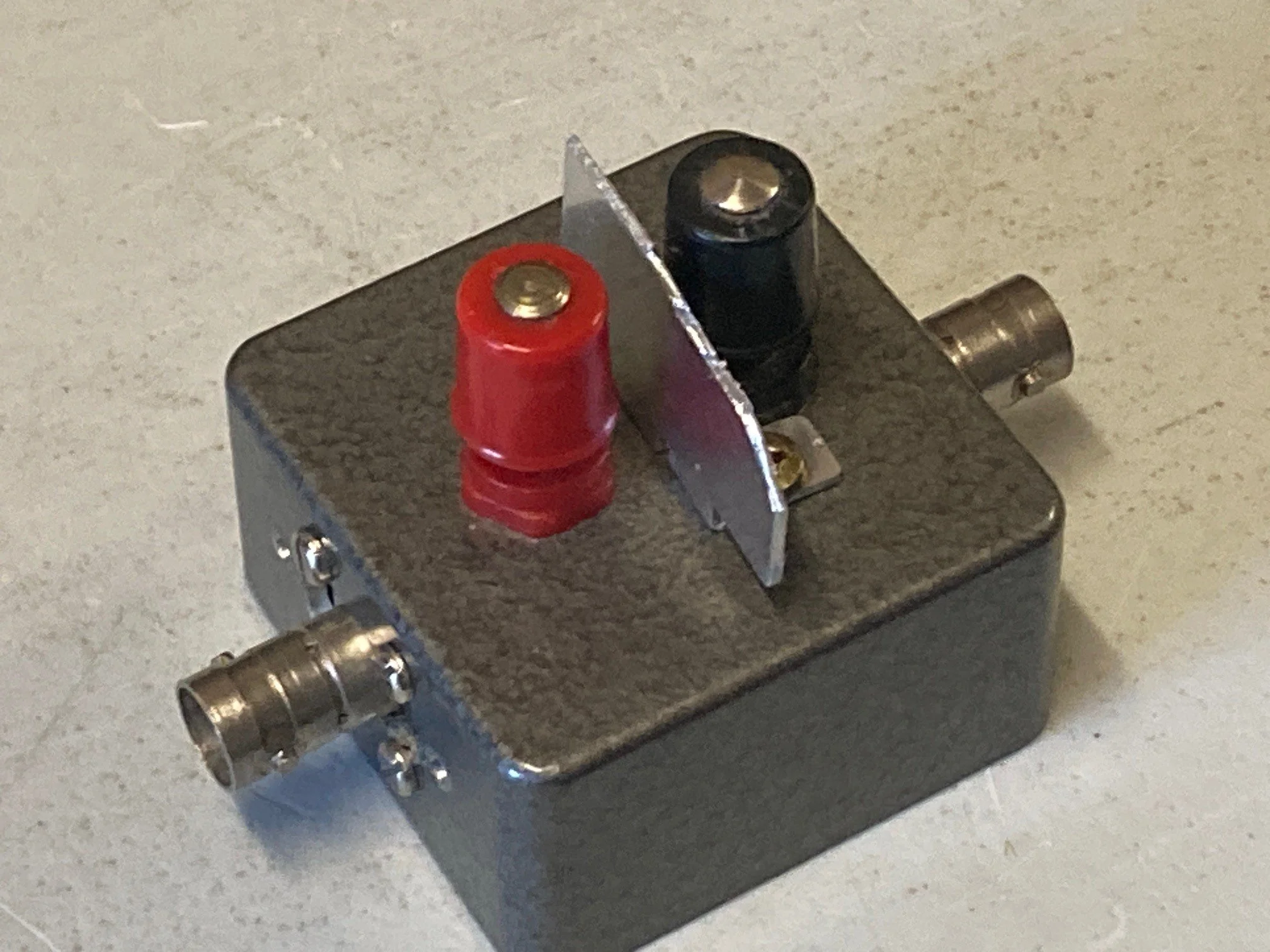 Lionel VK7ZLB, used his self-designed and constructed test jig to measure parameters of various electronic components. The test jig was constructed in a small die cast enclosure about 50 mm square, with a BNC socket on opposite sides that allowed for external patching to port 1 and port 2 on the VNA for “through” measurements. On the top of the enclosure are two push down binder posts, each connected to one BNC socket internally. The item under test is inserted between the two binder posts.