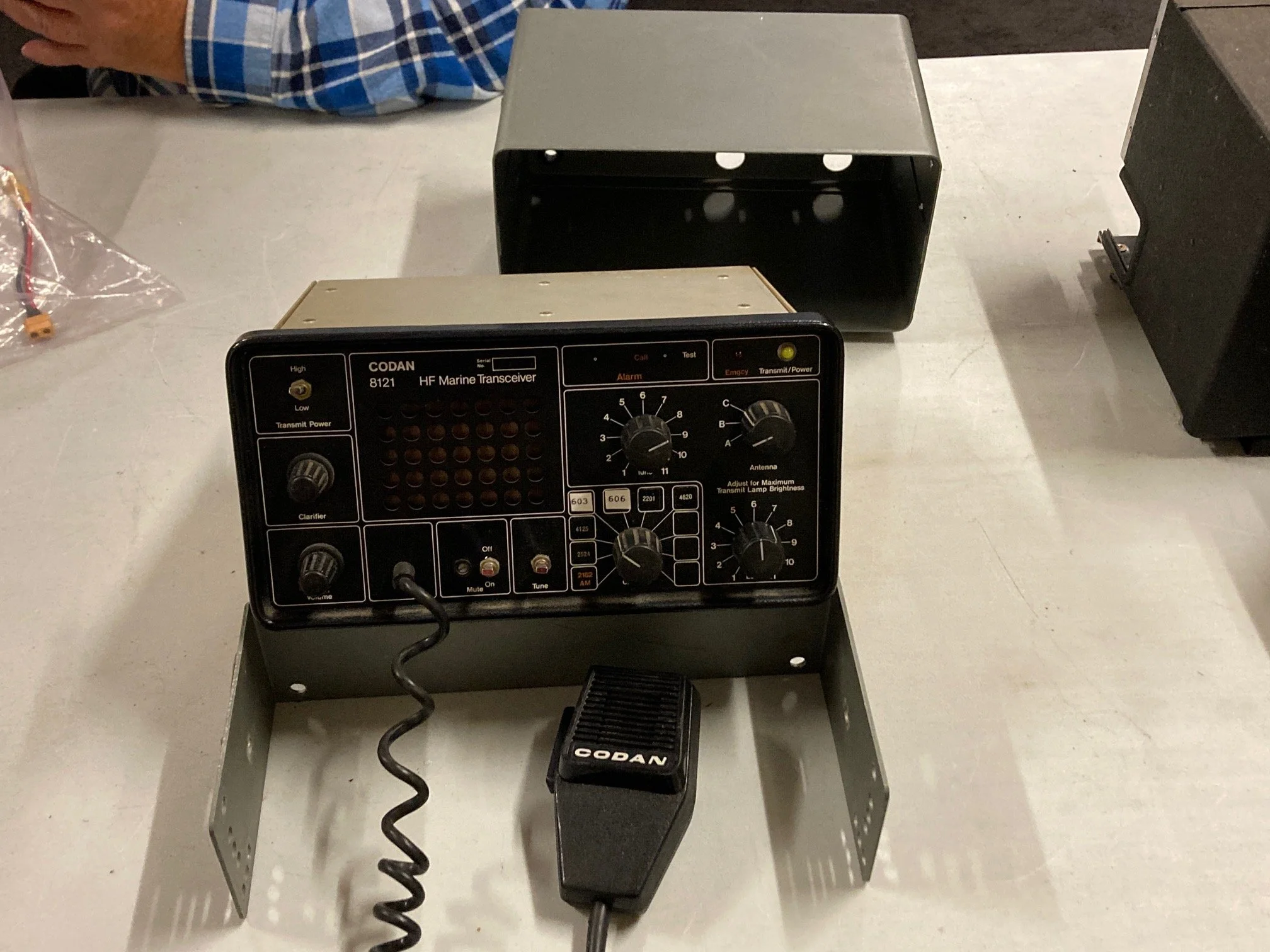 For a bit more of our Wednesday Technical Night last week, Ross VK7ALH brought in a Codan 8121 marine HF transceiver for show and tell. Designed for operation from 2 to 13 MHz, the unit supports up to ten fixed frequencies, each assigned to one of the ten front panel rotary selectable channels. The operating frequencies are set by installing the appropriate crystals into the internal socket bank.