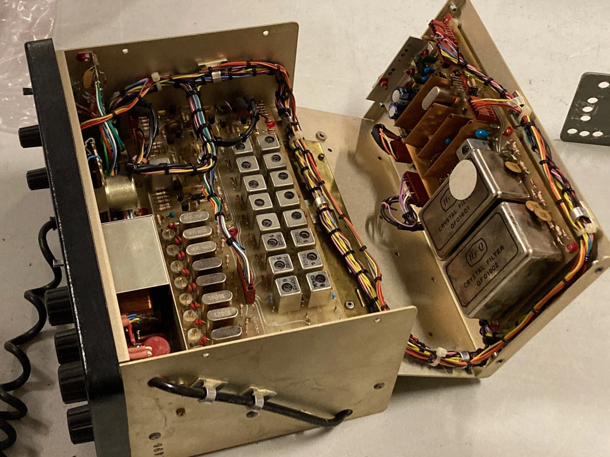 The radio can run from either 12 or 24 volt DC supplies, with positive or negative grounding, helping to minimise electrolysis issues on vessels. Reliability was clearly a major design focus, with thick film construction, flow-soldered boards, and fully laced internal wiring looms. Seeing that beautiful cable lacing again, certainly brought back some strong memories of the old days, hi-hi.