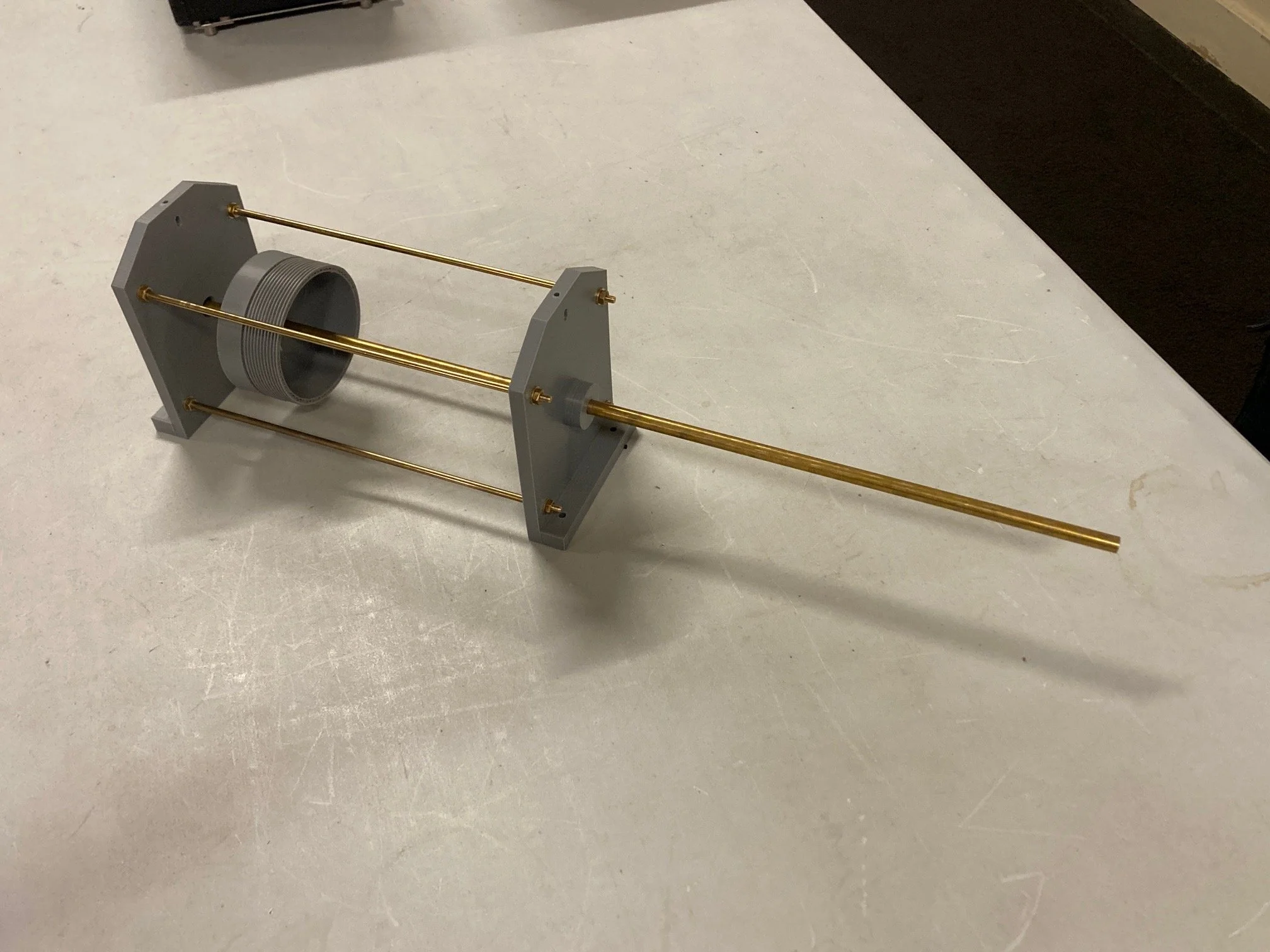 Colin VK7ZCF has been busy with his 3D printer again, this time starting work on a rather substantial roller inductor. He’s printed both end cheeks, think sturdy bookends and you’ll be close. These are spaced apart by four long brass rods with tapped ends, bolted through the cheeks to hold the assembly together with impressive rigidity. Running axially through the centre is a much heavier brass axle, and mounted on that is a large 3D printed coil former, all ready to take wire. Not bad for a prototype. It’s definitely taking shape, and we’re all looking forward to seeing the next iteration, hopefully at the next tech night.