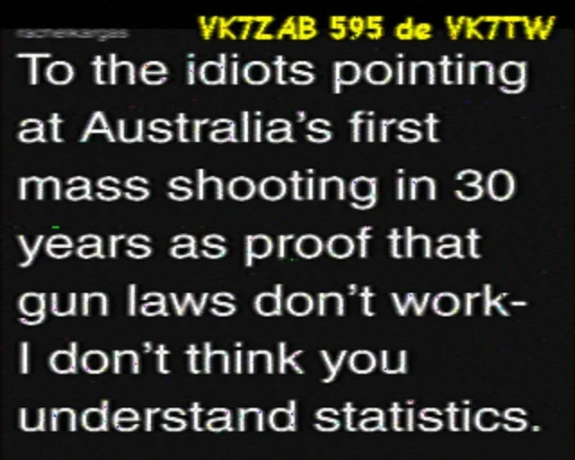 Note - If you missed previous nets there are archives of these SSTV nights. These photos can also be seen on Ken VK7KRJ’s and Steve VK7OO’s SSTV websites.