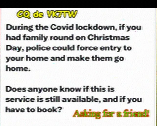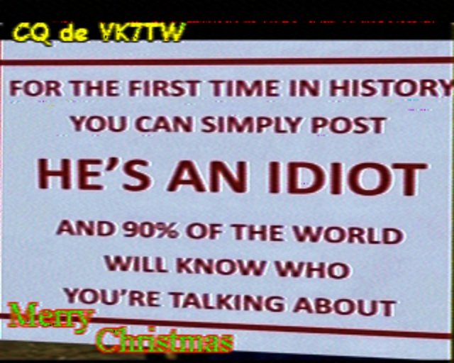 Note - If you missed previous nets there are archives of these SSTV nights. These photos can also be seen on Ken VK7KRJ’s and Steve VK7OO’s SSTV websites.