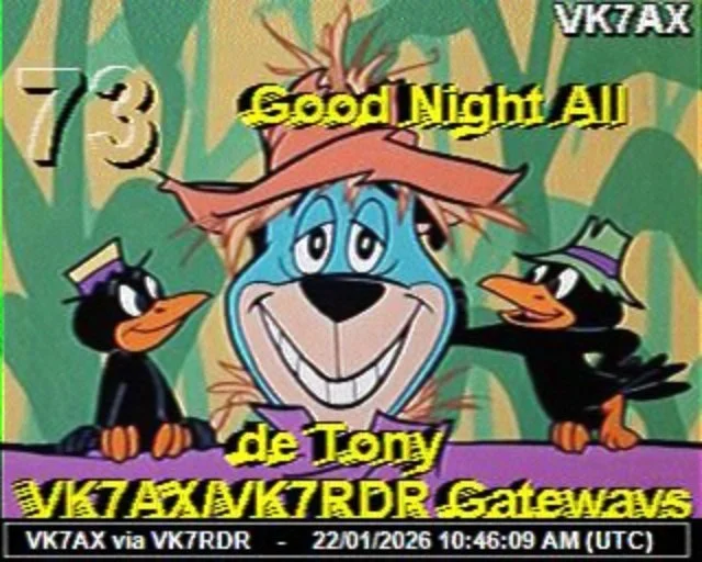 Note - If you missed previous nets there are archives of these SSTV nights. These photos can also be seen on Ken VK7KRJ’s and Steve VK7OO’s SSTV websites.