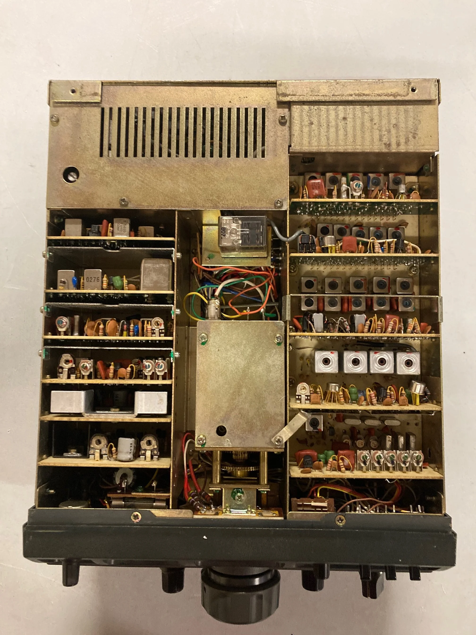 With the cover removed, the internal condition was also found to be in excellent condition. With its multiple vertical plug in printed circuit board modules this certainly heralded in the newer solid state construction techniques.