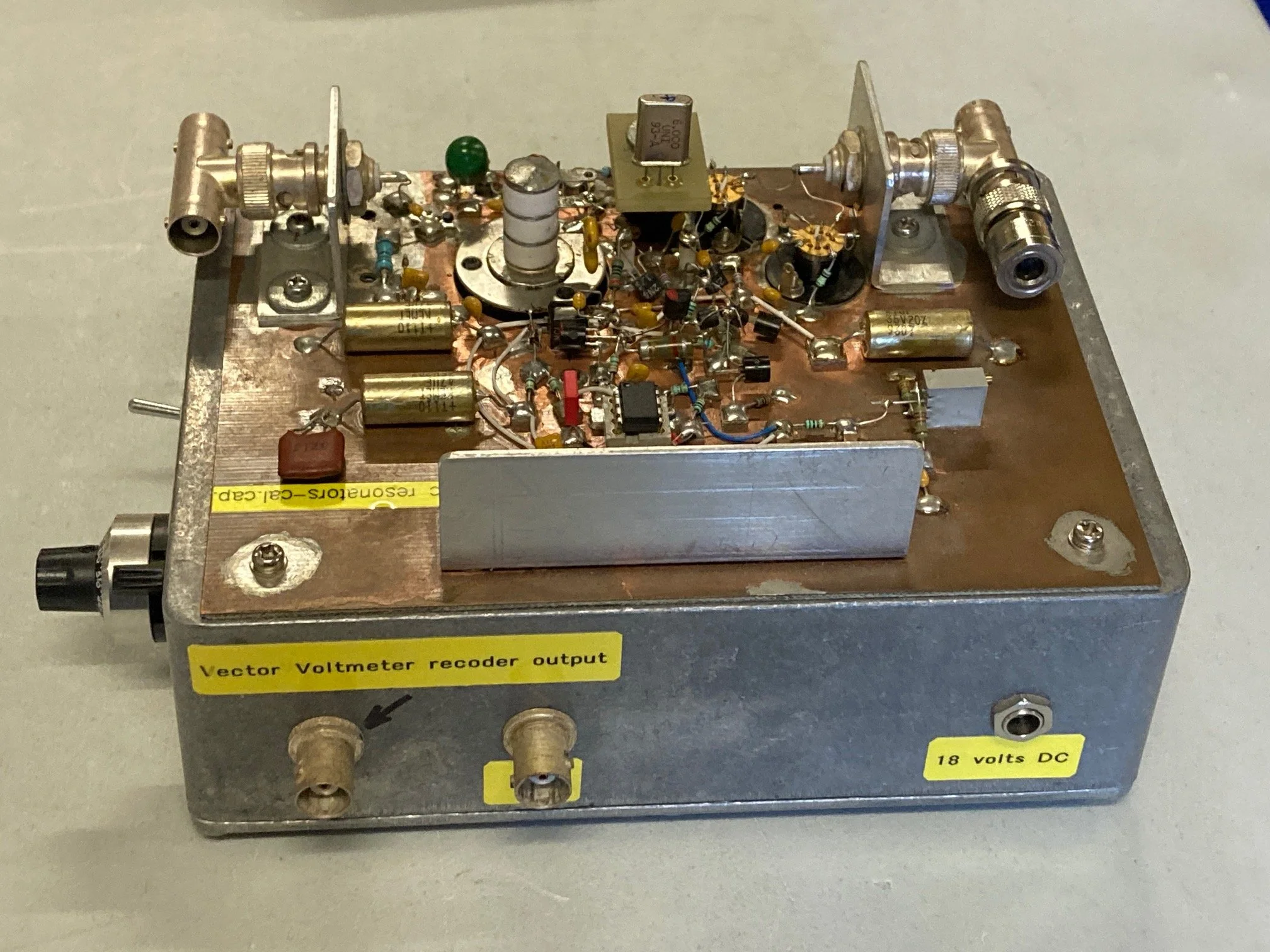 Friday morning tea came with an update from Trevor VK7TB, regarding a presentation earlier this month on crystal parameter measurements. Trevor brought in a plug in crystal test jig that he constructed fourteen years ago, consisting of an upturned printed circuit board with all the operational components fully accessible for soldering and tweaking, all mounted on top of a diecast enclosure which houses calibration and measurement switches as well as some external connectors. The test jig is complete with a sacrificial crystal socket and daughter board that can be replaced in case of any contact wear after testing many hundreds of crystals.